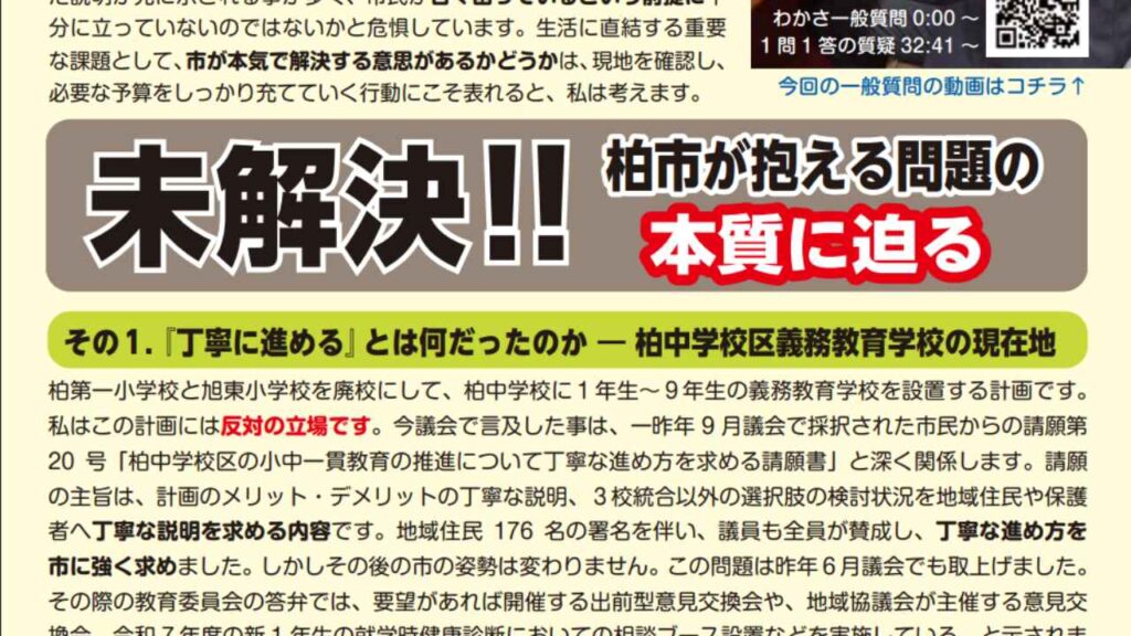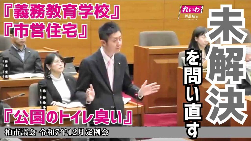 2025.12.12 柏市議会 令和7年度 第4回定例会 若狭朋広の一般質問です。今議会では、私が約 2 年半にわたり取り組んできた活動を振り返り、その中で柏市が抱える課題のう...